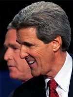 Die US-Wahlen: Kerry gegen Bush Wie wird die Wahl der US-Bürger am 2. November ausgehen? George W. Bush? Oder John Kerry, der Mann mit den Initialen von John F. Kennedy? Wann wird das Ergebnis der Wahl geben? Wird es wieder Betrugsvorwürfe geben?Fragen über Fragen, und schon bald sind sie beantwortet. Schon jetzt, ein paar Tage vor der Wahl gibt es Computerpannen, welche an das Chaos in Florida von vor vier Jahren erinnert, wo wenige hundert Stimmen über den Ausgang der letzten Wahl entschieden. Jeden Tag gibt es neue Umfragen über die US-Wahl, doch immer ist es ein Kopf an Kopf-Rennen. Den einen Tag geht es für die Republikaner (Bush) auf, am nächsten Tag sind die Umfragewerte für die Demokraten (Kerry) besser. Bush-Gegner Michael Moore ist engagiert wie noch nie: Er verzichtet sogar auf einen möglichen Oskar seines Filmes "Fahrenheit 9/11", damit er am Tag vor der Wahl im US-Fernsehen ausgestrahlt werden kann. Auch im deutschen Fernsehen könnte man am 2. und 3. November glauben, es wäre die Wahl in der Bundesrepublik: Denn zahlreiche Sender berichten mit Reportern live aus den Vereinigten Staaten. Fabian (Redakteur) |